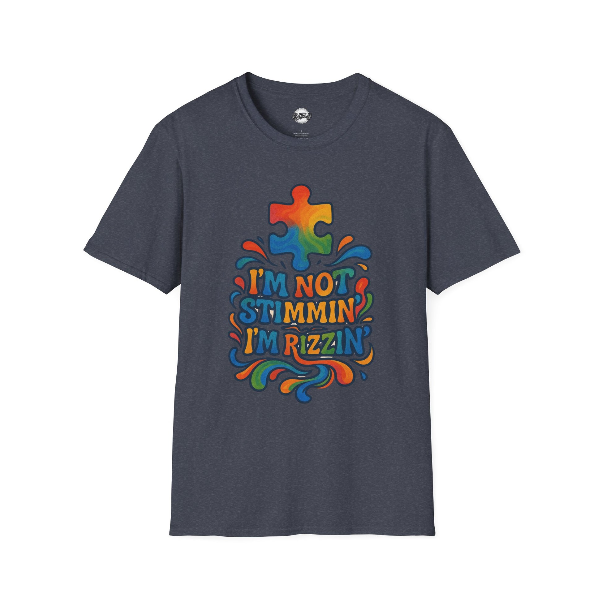 Colorful Puzzle Design T-Shirt - "I'm Not Stimming, I'm Rizzin'"