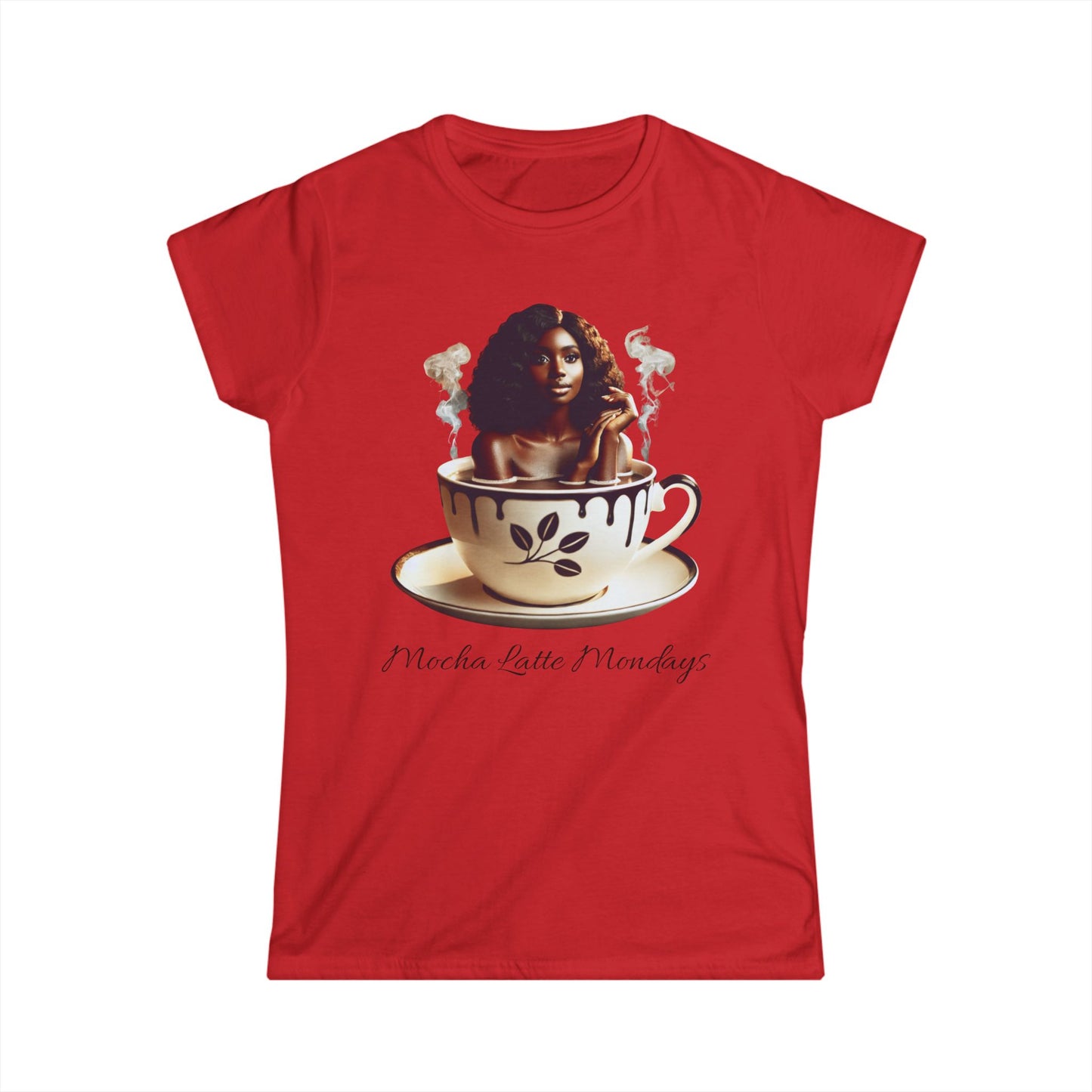 Mocha Latte Mondays Women's Tee - Stylish Coffee Lover Shirt. This softstyle tee is perfect for the coffee enthusiast looking for a fashionable and comfortable shirt to wear on casual days. Ideal for women who enjoy coffee-themed clothing on casual occasions, holidays, or coffee shop outings.